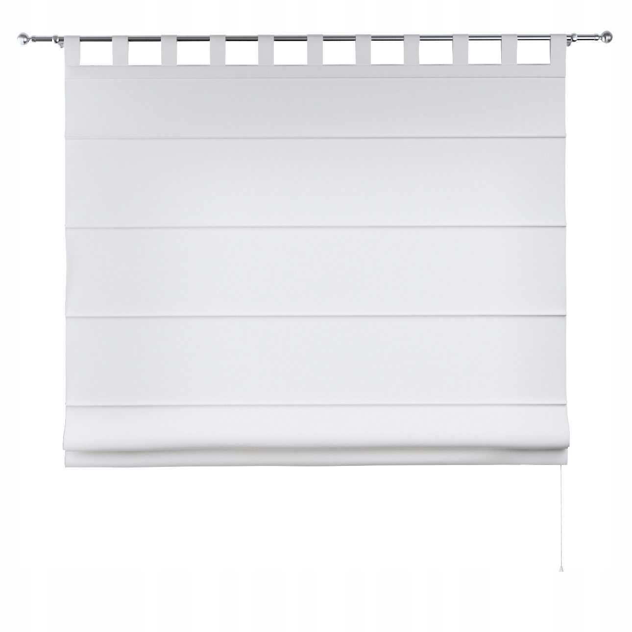 Римская штора Verona с подтяжками для подвешивания на трубчатый карниз. Выполнено прямо, без рюшей. Длина лямок 10 см.
