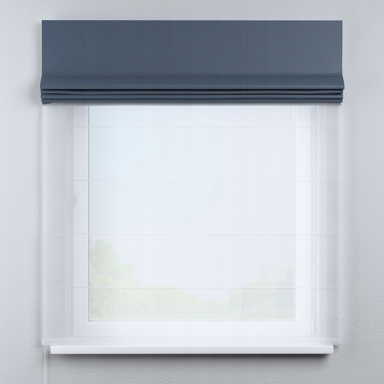 Двойная римская штора, совмещающая функцию шторы и портьеры.