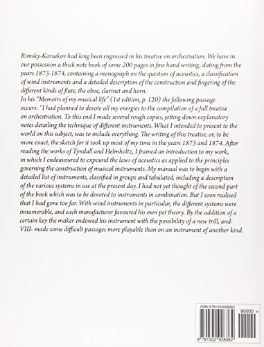 Принципы оркестровки Николай Римский-Корсаков Под редакцией Максимилиана Стейнберга Английский перевод Эдварда Агата Римский-Корсаков долгое время был поглощен в его лечении. У нас есть в нашем распоряжении толстую книгу с нотами около 200 страниц в прекрасном написании рук, датируемой 1873-1874 годы, в которой содержатся монография по вопросу об акустике, классификации ветровых инструментов и подробное описание конструкции и рукава различных видов флейты, Ovee, Clarinet и Horn. In His "Memoirs of My Musical Life" (1st edition, p. 120) The Following Passage Occurs: "I Had Planned to Devote All My Energies to The Compilation of A Full Treat Notes Detailing the Technique of Different Instruments. of Tyndall and Helmholtz, I Framed An Introduction to My Work, In WHICH and ENDEAVOURE And Tabulated, Including A Description of the Various Systems in Use at the Present Day. But and Soon Realized That и зашел слишком далеко