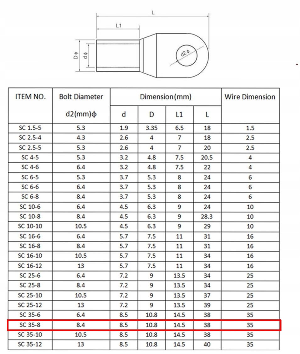 - Сечение кабеля: 35 мм2