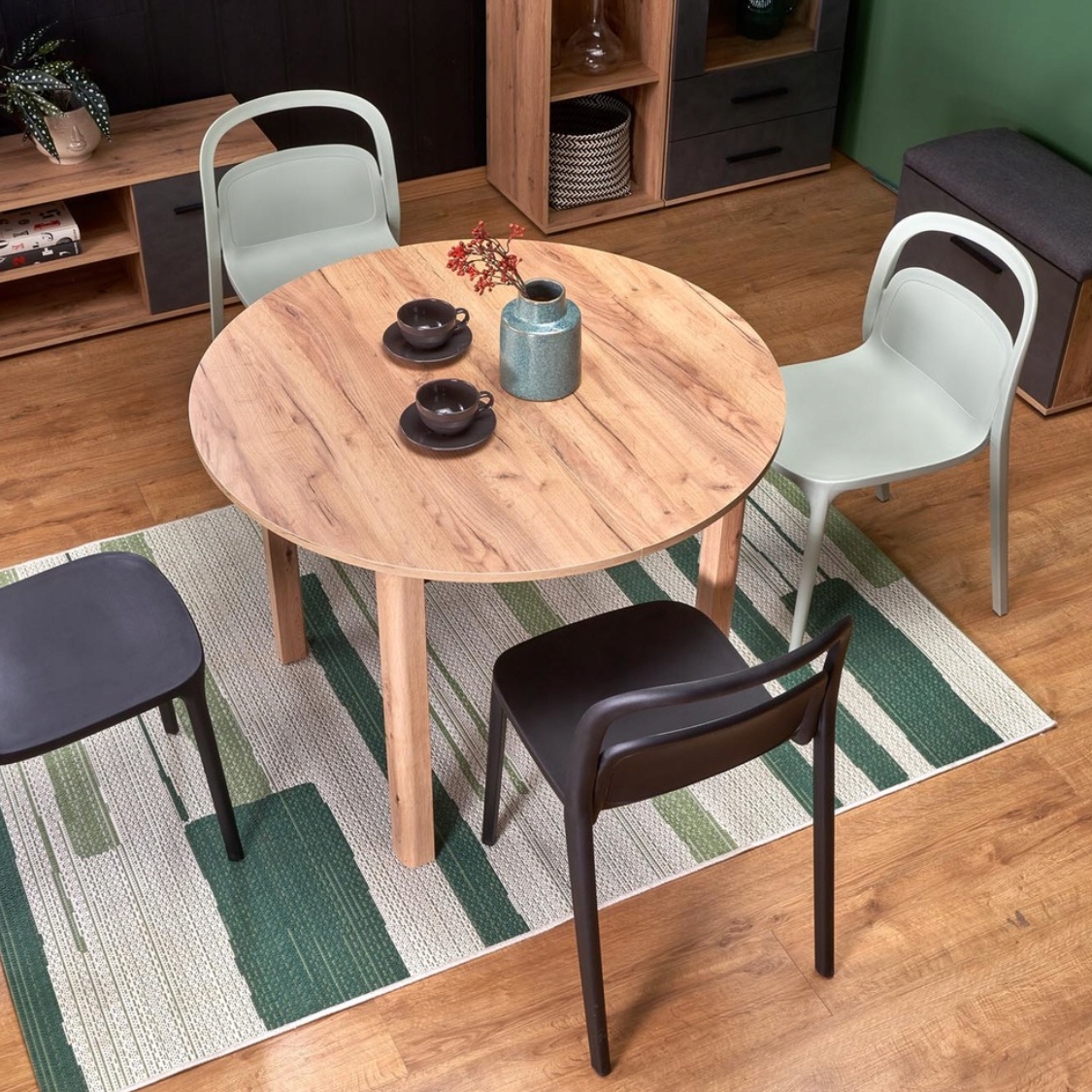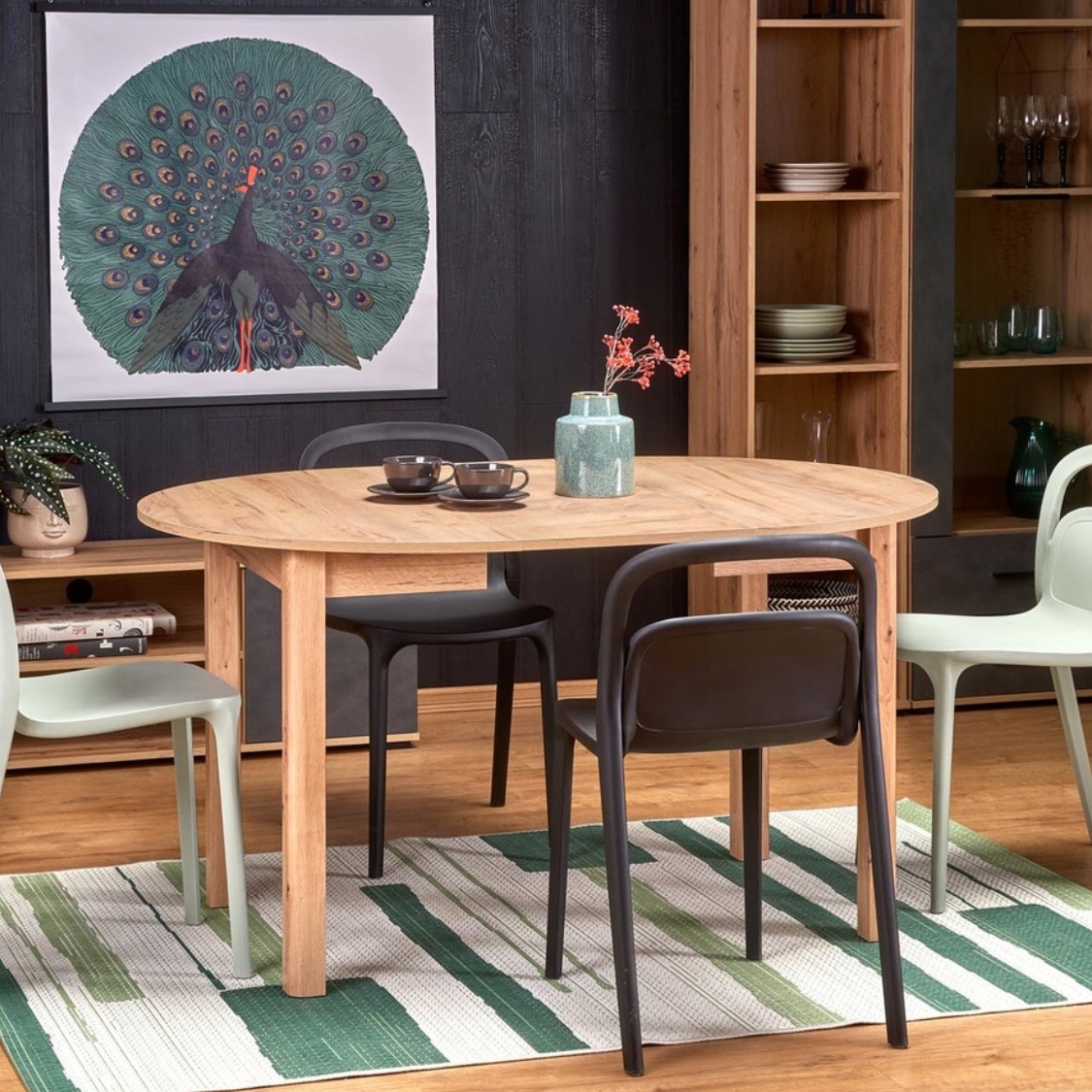 Круглый стол складывания для столовой Little 102-142x102 CM Rollo dąb Craft Mdf Halmar