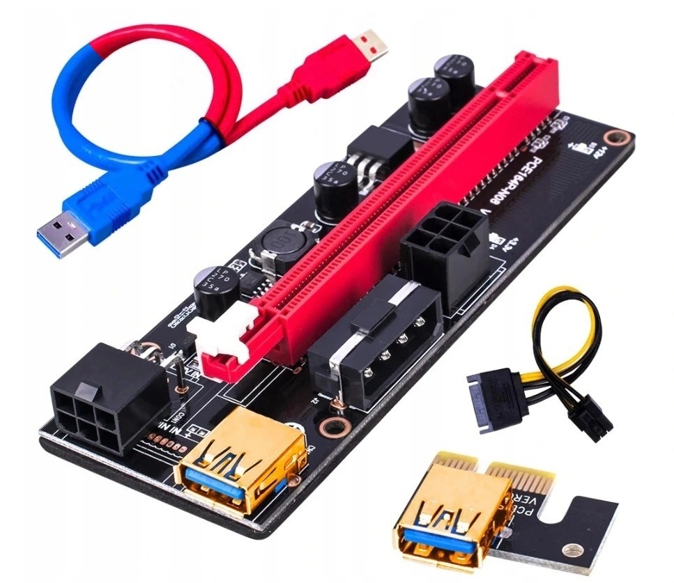 - питание райзера: SATA/PCI-E 6-контактный/вилка molex