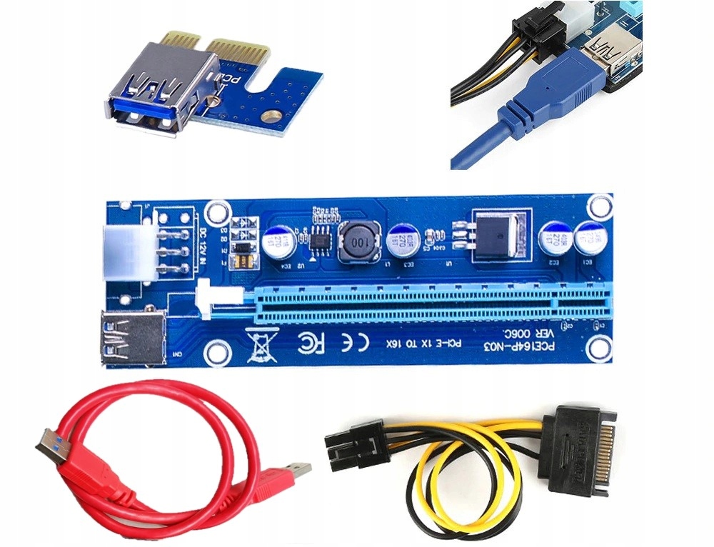 Riser rev 006C USB 3.0 PCI-E 1x-16x 6PIN SATA