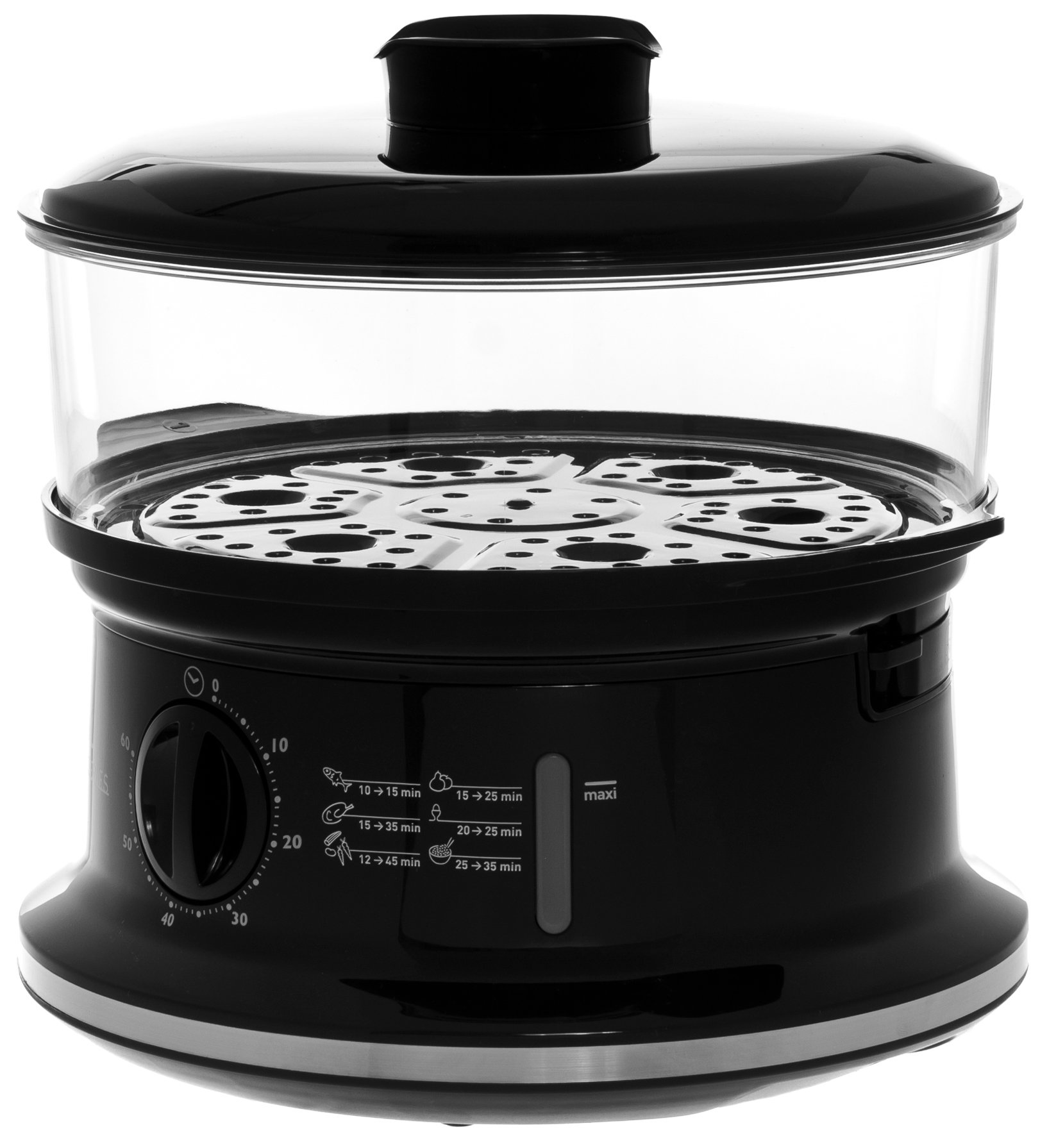 Небольшие размеры устройства облегчают работу. хранить его где угодно. Изделие оснащено двумя противнями, благодаря которым можно готовить овощи, рыбу и мясо, и все это в 6-литровой емкости устройства.