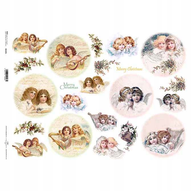 РИСОВАЯ БУМАГА для декупажа А3 R349L Рождественские ангелочки