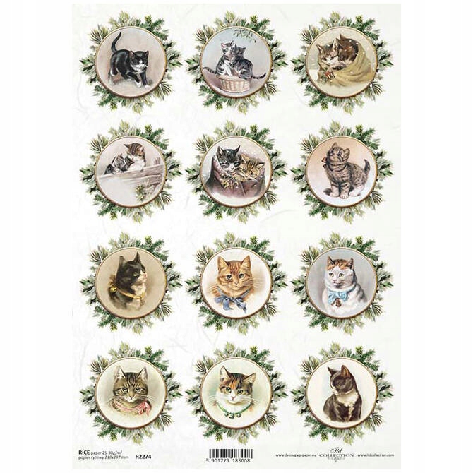 РИСОВАЯ БУМАГА для декупажа А4 ITD-R2274 коты