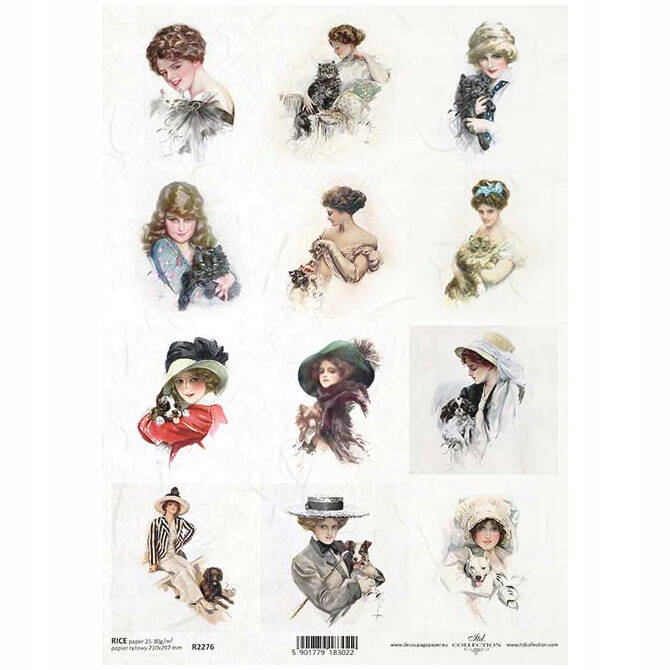 РИСОВАЯ БУМАГА для декупажа А4 ITD-R2276 винтаж, женщины, кошки, собаки