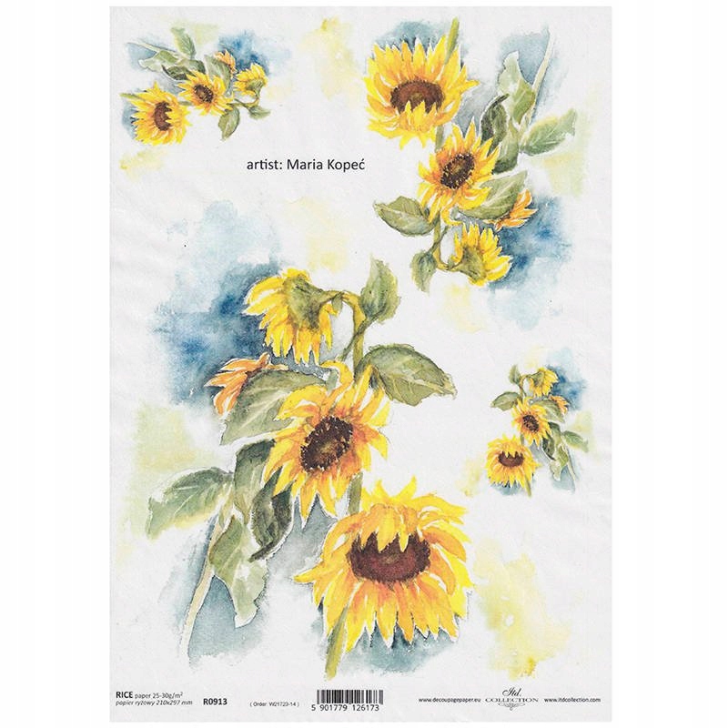 РИСОВАЯ БУМАГА для декупажа А4 R0913 Подсолнухи