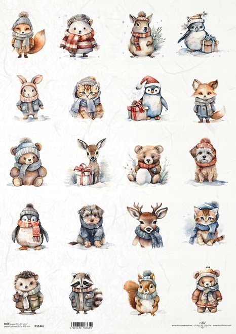 РИСОВАЯ БУМАГА большая А3 Р1144Л животные в зимних костюмах 2 сорт
