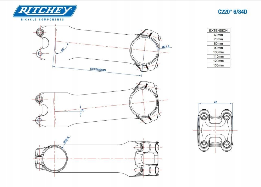 Ritchey mostek WCS C220 Carbon Matrix UD 6° 1 1/8" 80mm