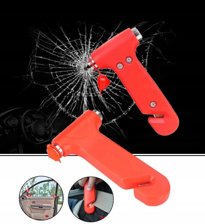 Небольшой и компактный безопасный молоток, которым при необходимости можно разбить боковое стекло автомобиля или отрезать застрявший ремень безопасности.