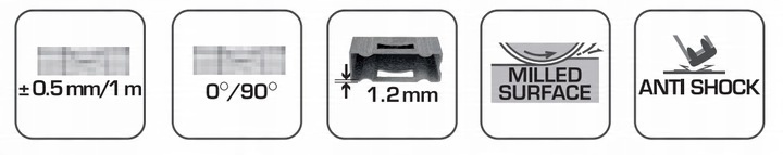 - фрезерованная боковая кромка повышает точность измерений до +/- 0,5 мм/м