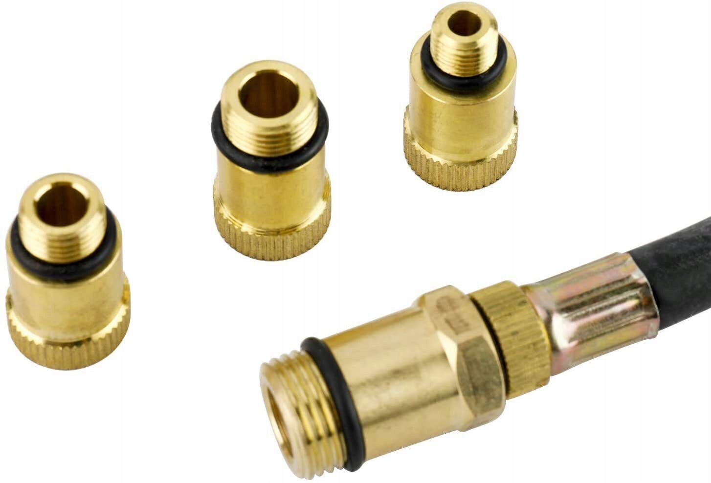 В пластиковом чемодане есть датчик давления с клапаном, прямым и изогнутым удлинителем, протягивающим шлангом давления и 4 адаптерам для соединения с цилиндрами. Они оснащены быстрыми муфтами для легкой и быстрой установки.