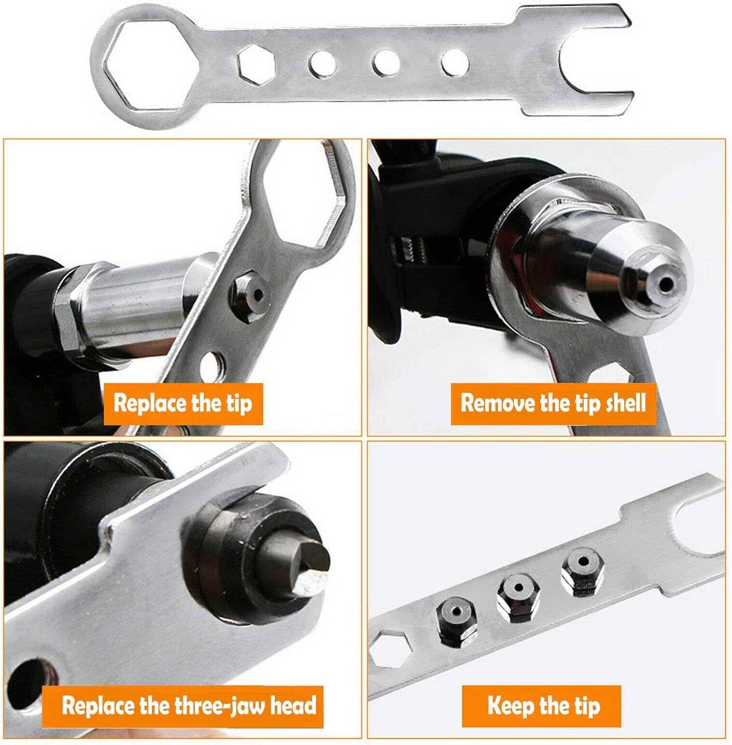 Высококачественный материал: электрический заклинатель изготовлен исключительно из кованого металла с высокой рабочей прочностью. Кованая стальная кончика имеет высокую твердость и долговечность, экономя время и усилия. Адаптер для заклепка более трудоемкий, чем ручной и более удобный, чем пневматический. Это хороший помощник дома и на работе
