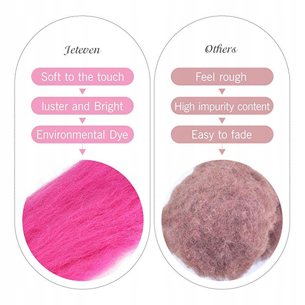 1. Высококачественные материалы: изготовлены из мягких и пушистых волокон, похожих на фетр, выглядят небольшими, но аккуратными, а скорость формования выше, поэтому можно легко получить необходимую симпатичную форму. Подходит для иглопробивного фетра, мокрого фетра и росписи шерсти, идеально подходит для шерсти ручной работы.