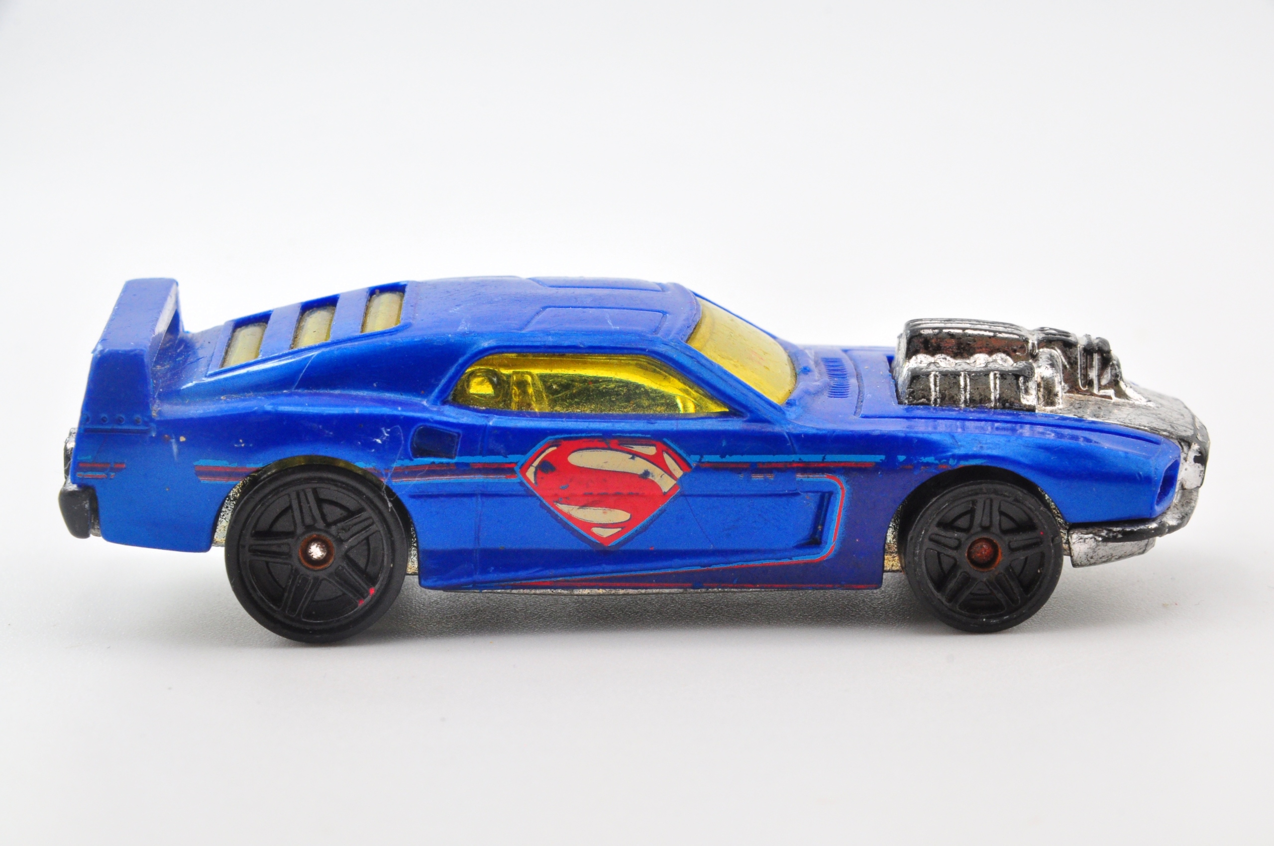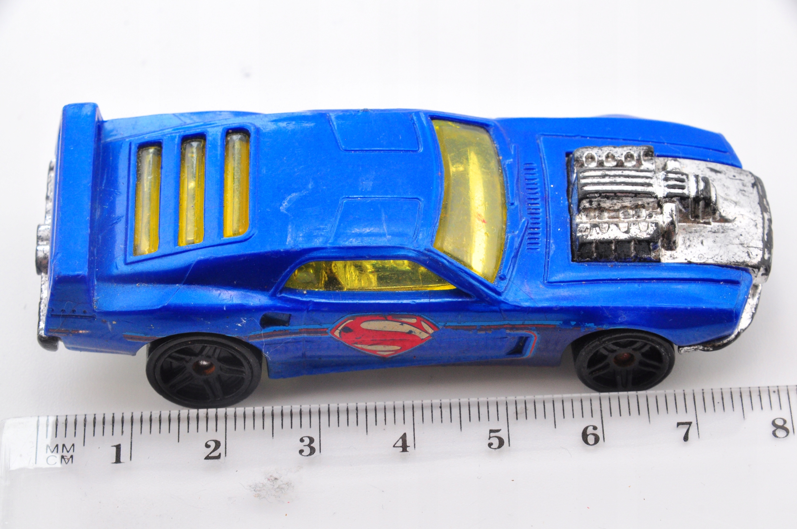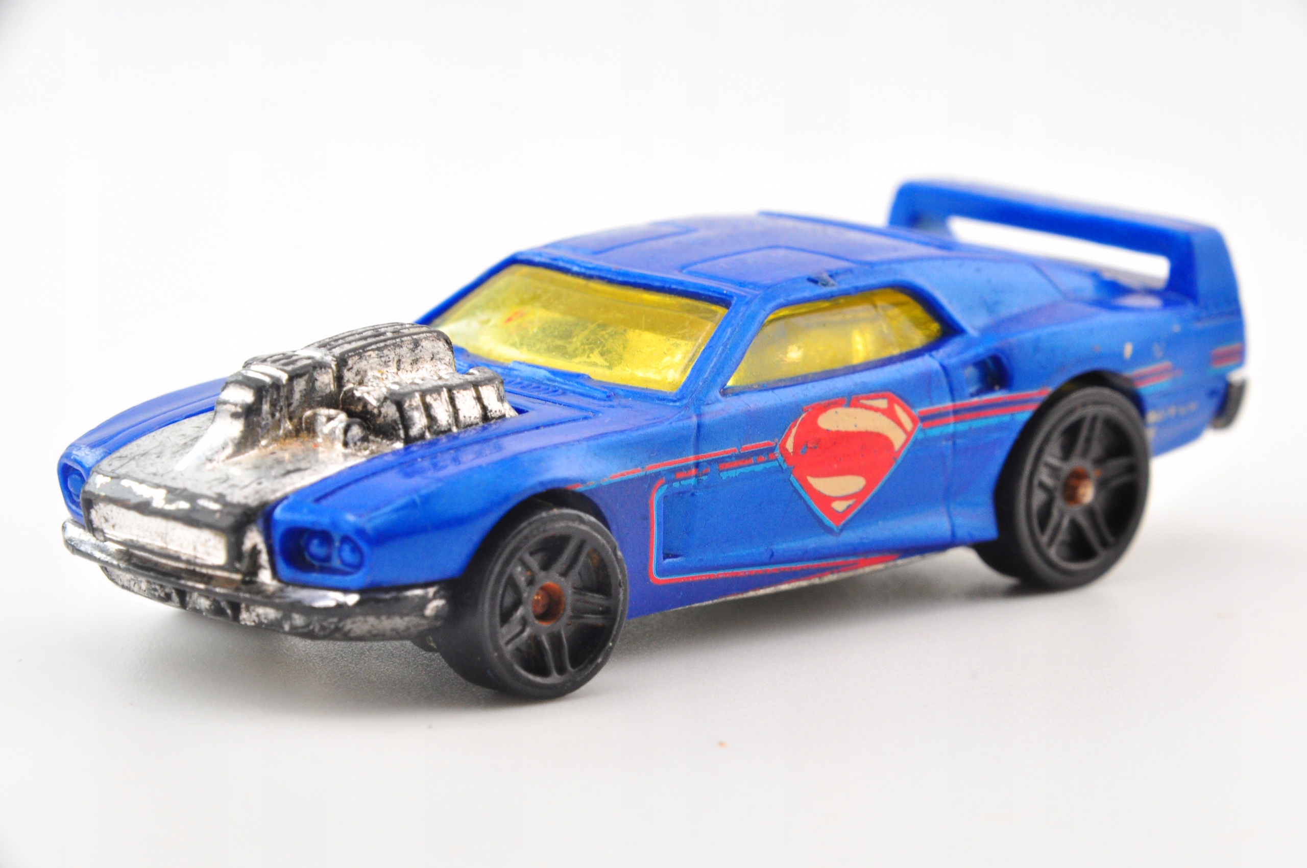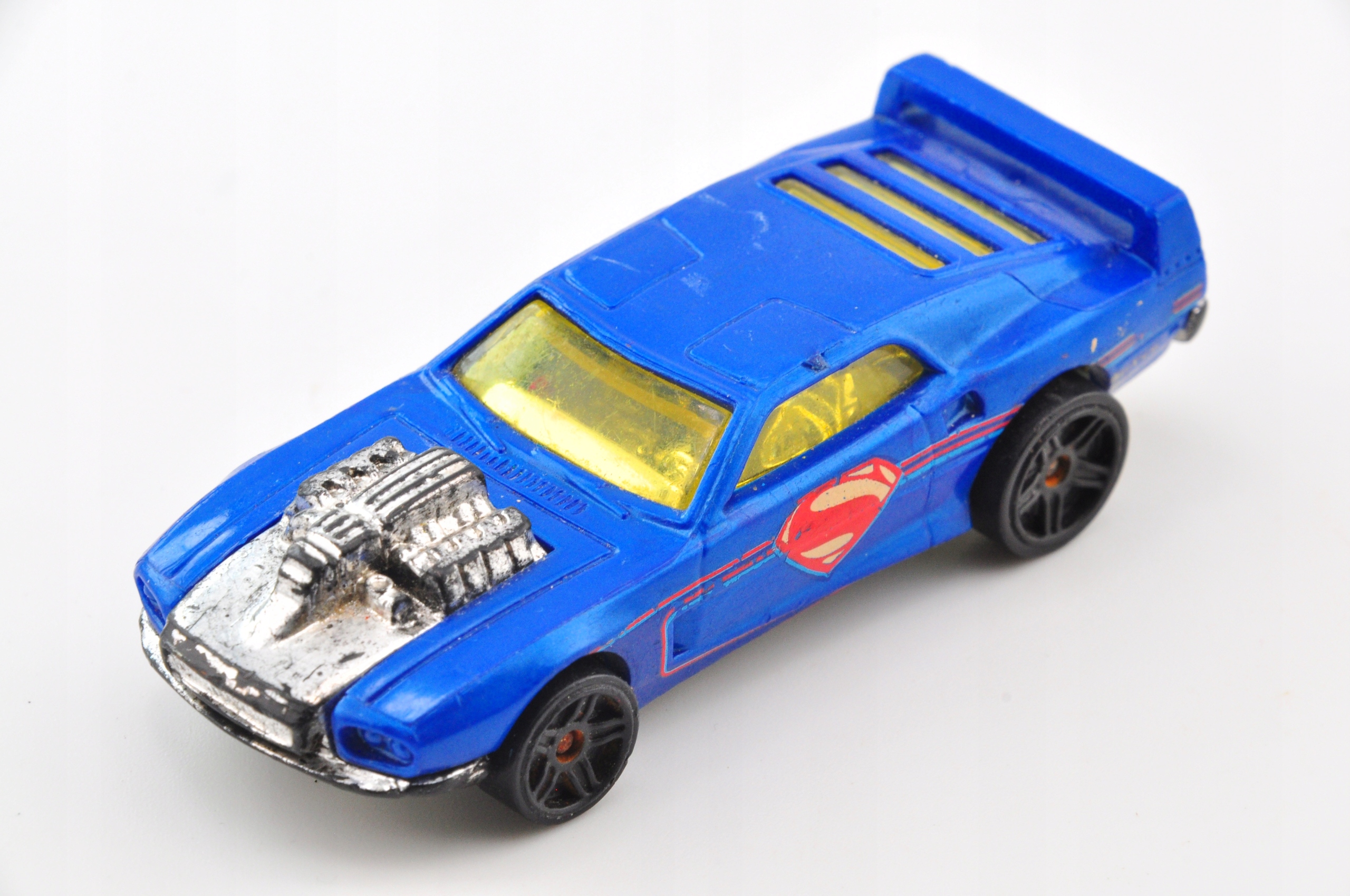 Модель, вдохновленная спортивными транспортными средствами с мотивом Супермена. Гоночные цвета с элементами супергероя. Стиль 2000 года.