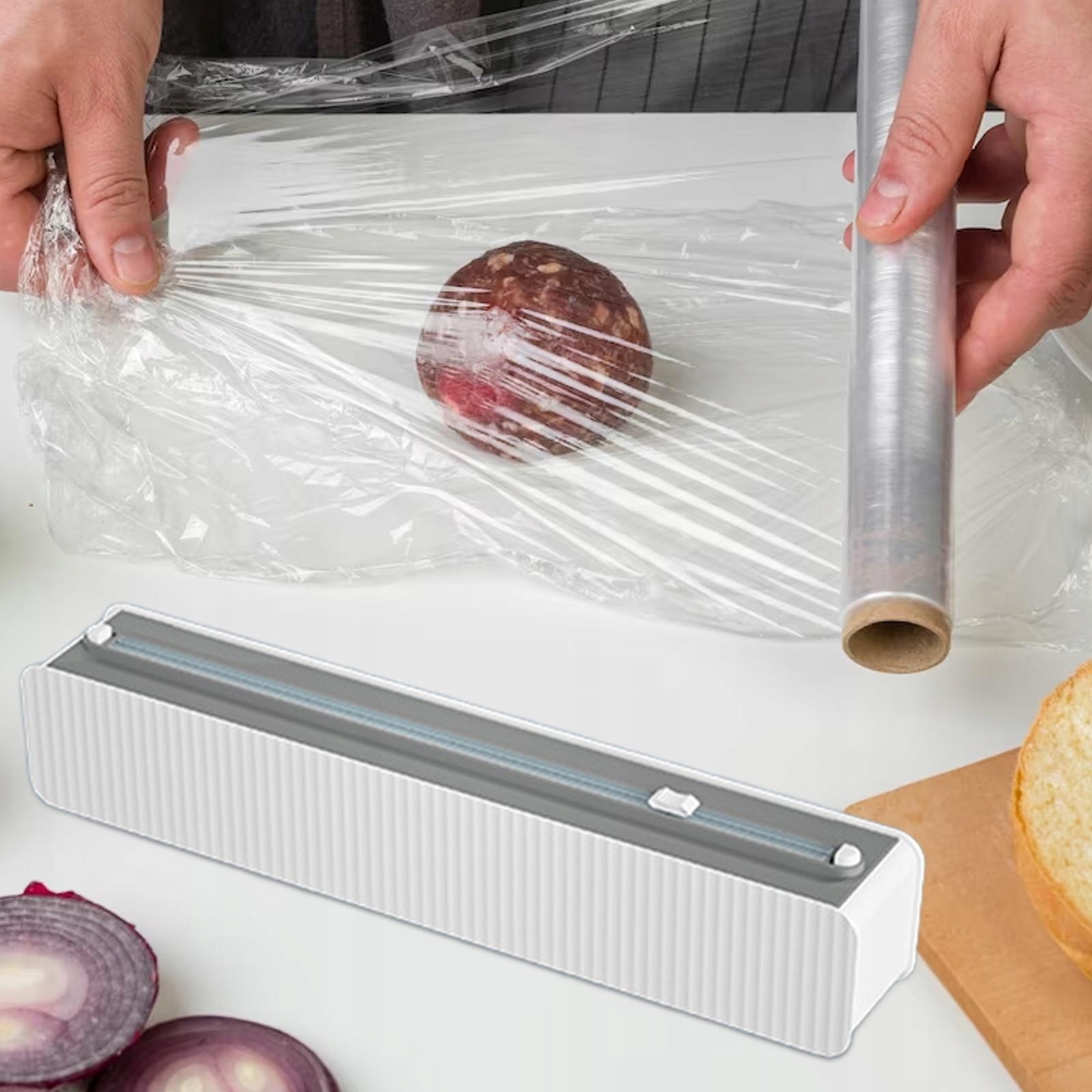Дизайн: Диспенсер для пищевой пленки можно устанавливать на холодильники, фиксированные кухонные столешницы, гладкие офисные столешницы и т. д.