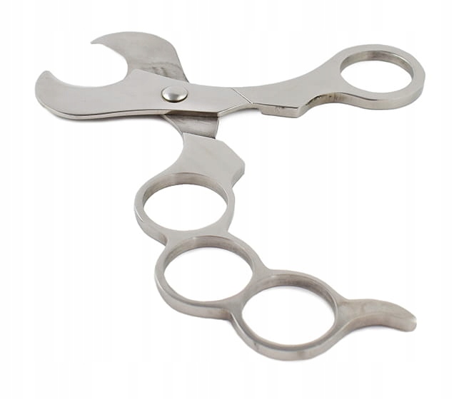 Ножницы для сигар чрезвычайно оригинальной и интересной формы в сочетании с пальчиковым кастетом. Современный дизайн и точность исполнения делают его элегантным и желанным. Прочно изготовленные, они гарантируют простую и удобную стрижку. Оснащен двумя лезвиями серповидной формы.