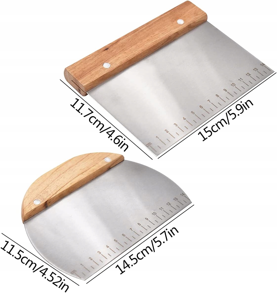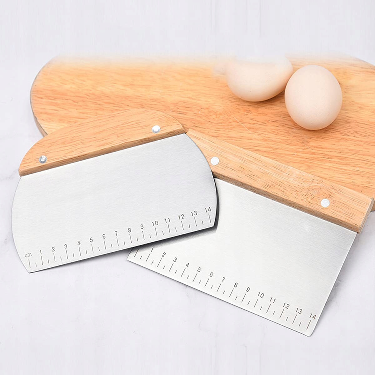 Полукруглый квадратный скребок с деревянной ручкой для нарезки муки, лопатка для теста из нержавеющей стали с градуированной режущей лопаткой