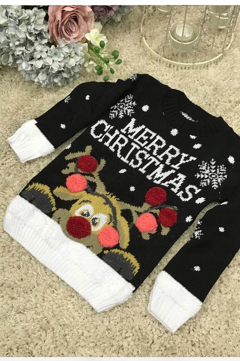 ЧЕРНЫЙ РОЖДЕСТВЕНСКИЙ ДЖЕМПЕР С ОЛЕНЯМИ «ВЕСЕЛОГО РОЖДЕСТВА»