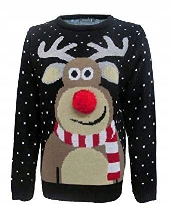ЧЕРНЫЙ ДЕТСКИЙ ДЕТСКИЙ ДЖЕМПЕР С 3D ОЛЕНЬИМ НОСОМ