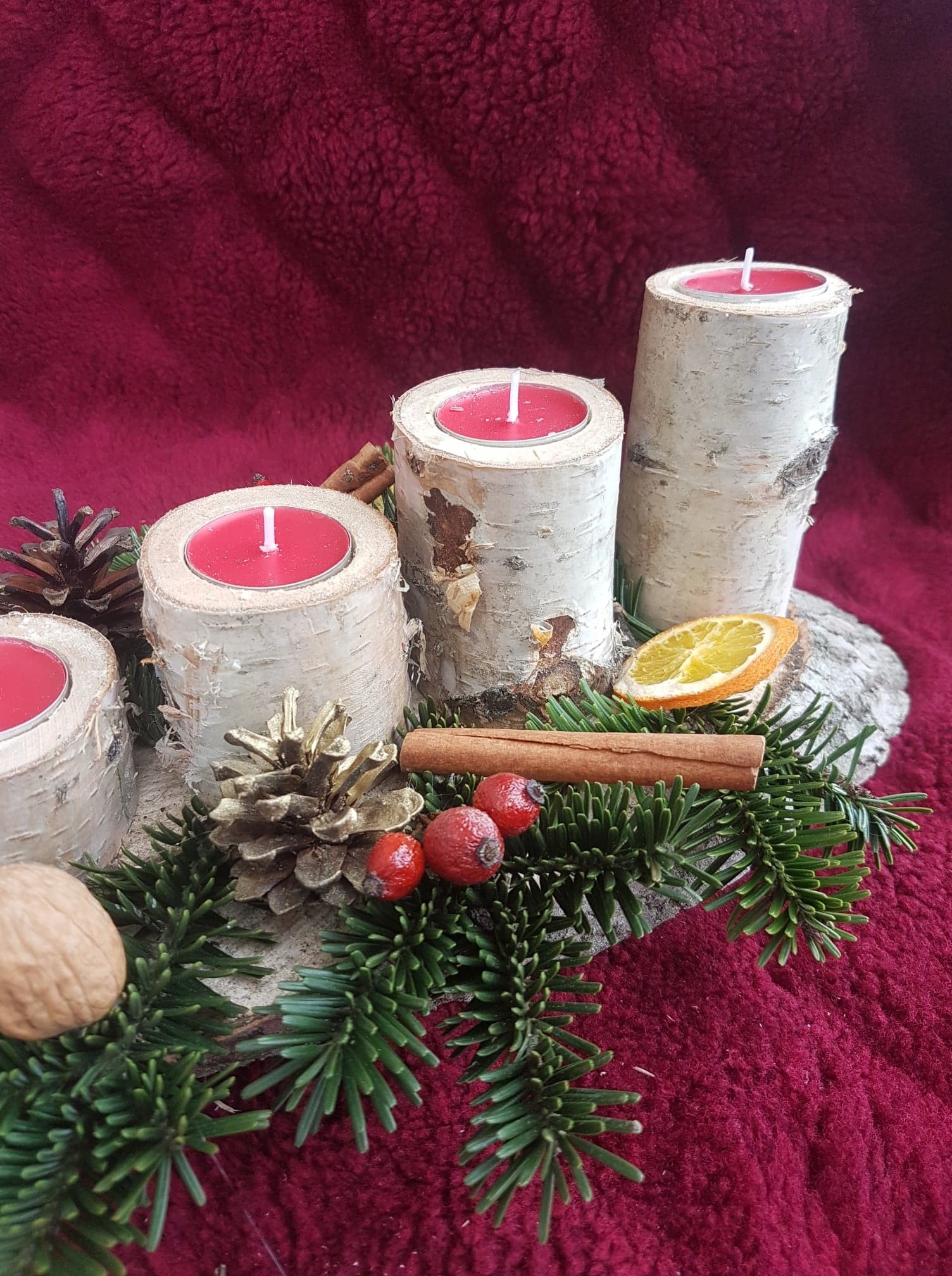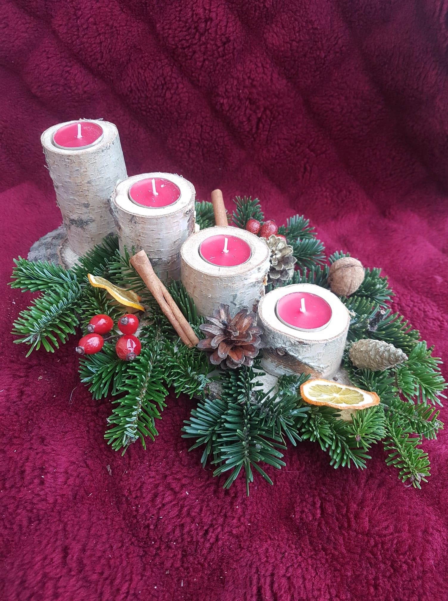 головной убор из дерева alder b> с овальной подставкой, на которой есть 4 первокурсника березы, разные высоты. В WYD можно заменить так называемые свечи. Использовалось украшение: веточки, изготовленные из живой пихты, сосновых конусов, орехового ореха, сухого апельсина, дикой розовой фрукты , корицы и свечи красным.