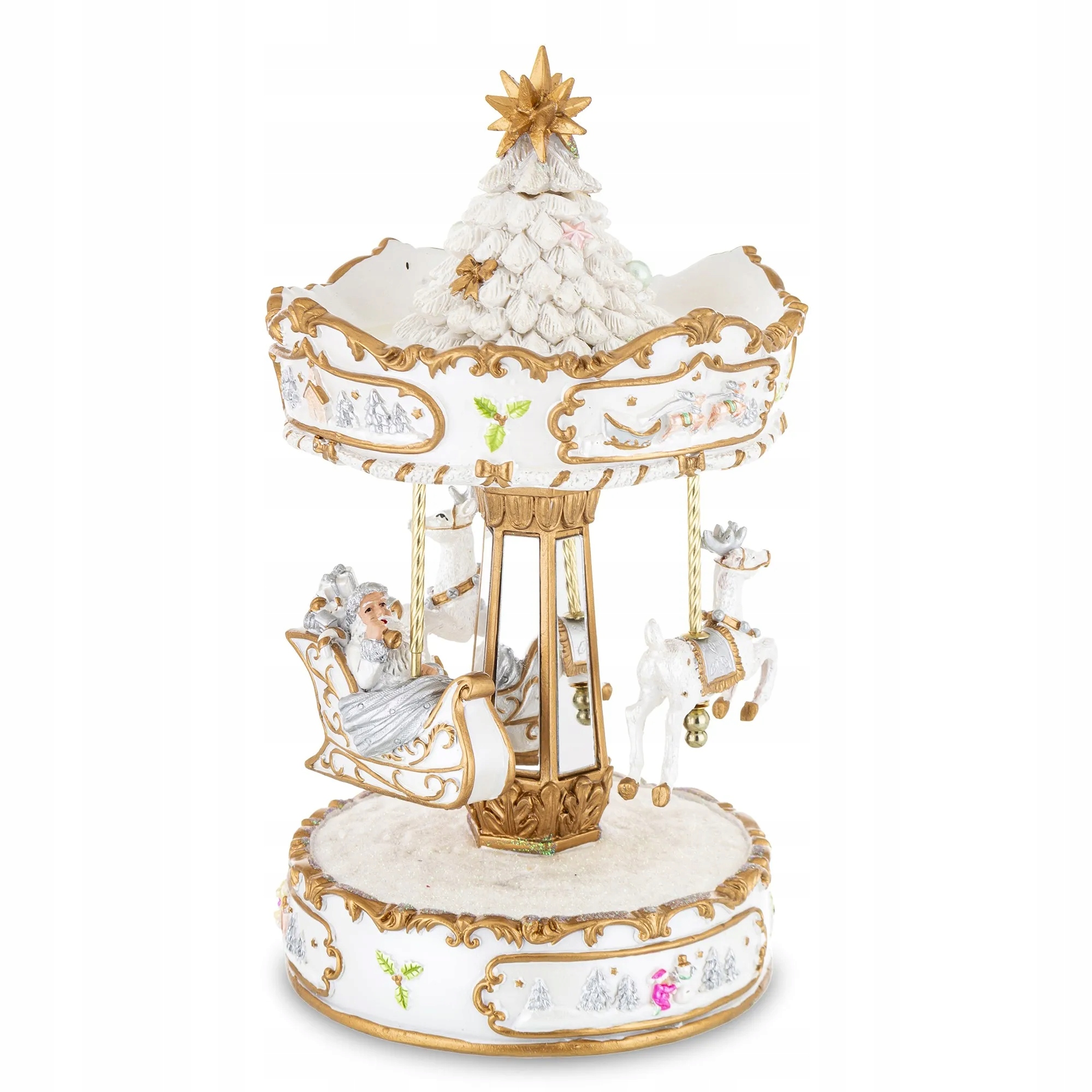 Рождественская украшение карусель с белой и золотой музыкальной коробкой 25.5x15x15 см 167720