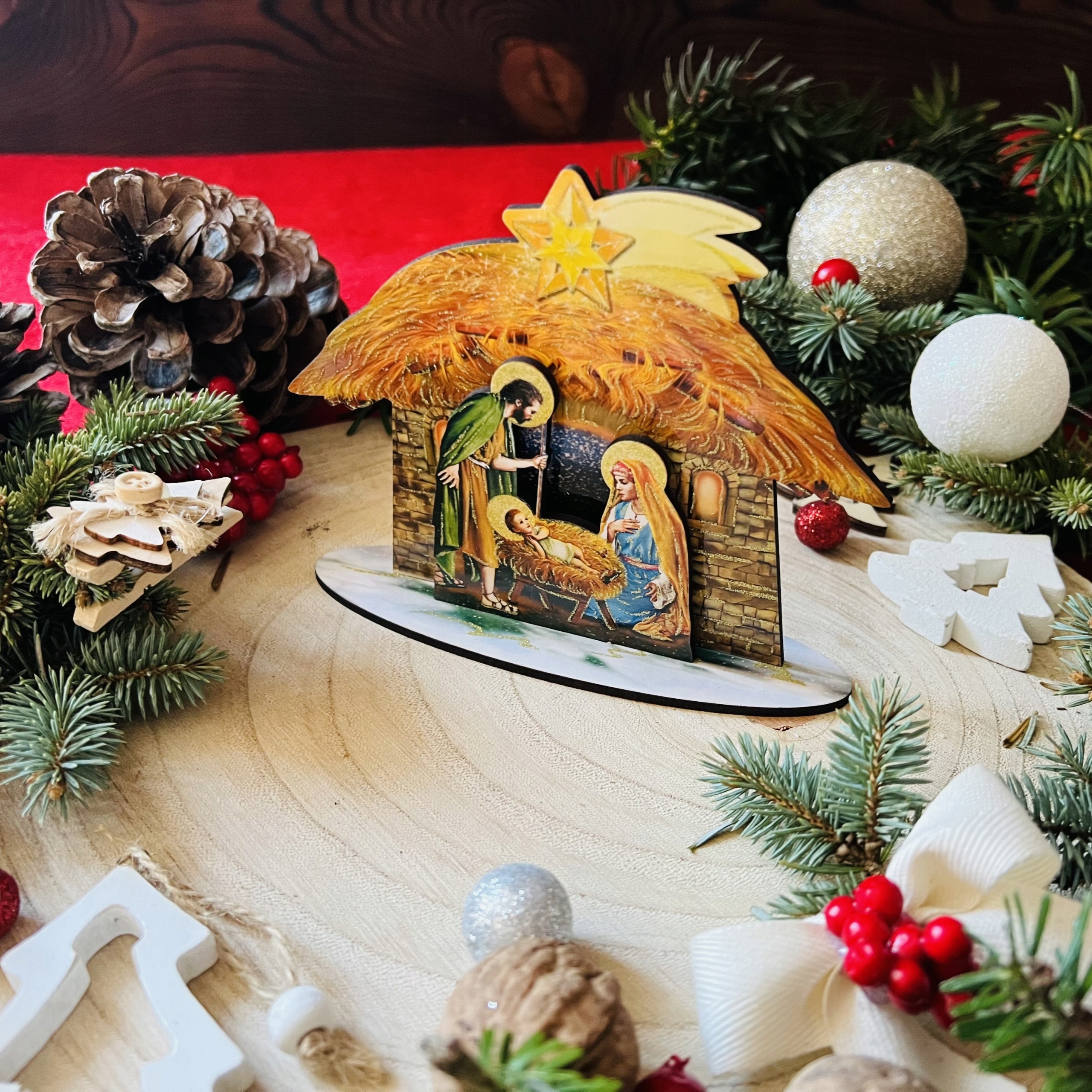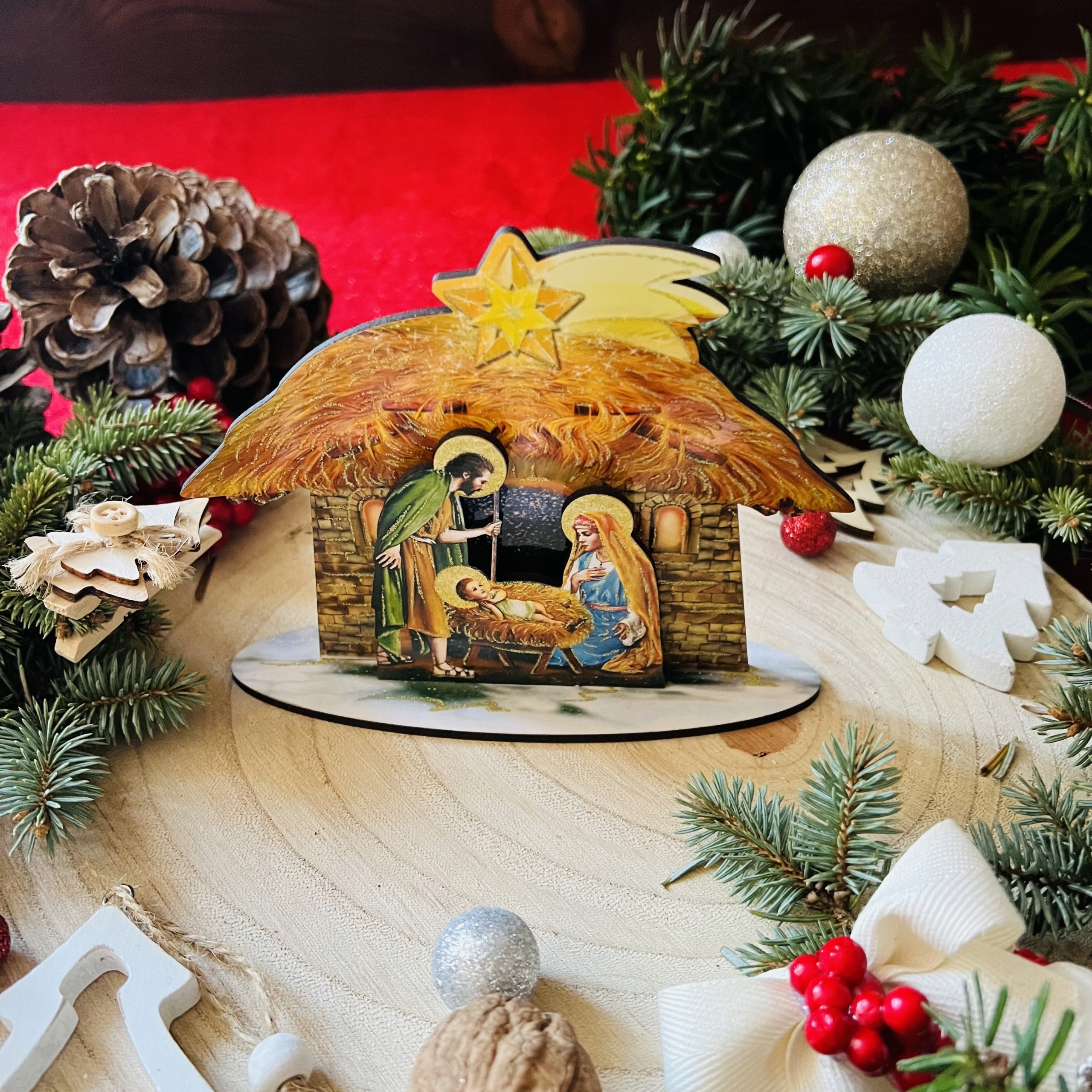 Вы ищете экстраординарное украшение для праздников? Наша маленькая деревянная кроватка является идеальным решением. Это больше, чем просто украшение - это выразительное проявление Рождества и магии. И графика: наши кроватки восхищаются чистыми цветами и графикой, которые отражают всю красоту чудо рождения Иисуса Христа.