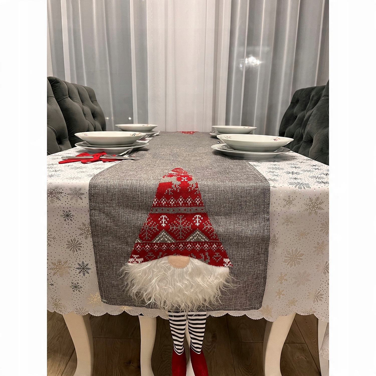 Різдвяна доріжка Скатертина Christmas Gnomes Dwarf Grey Christmas Eve