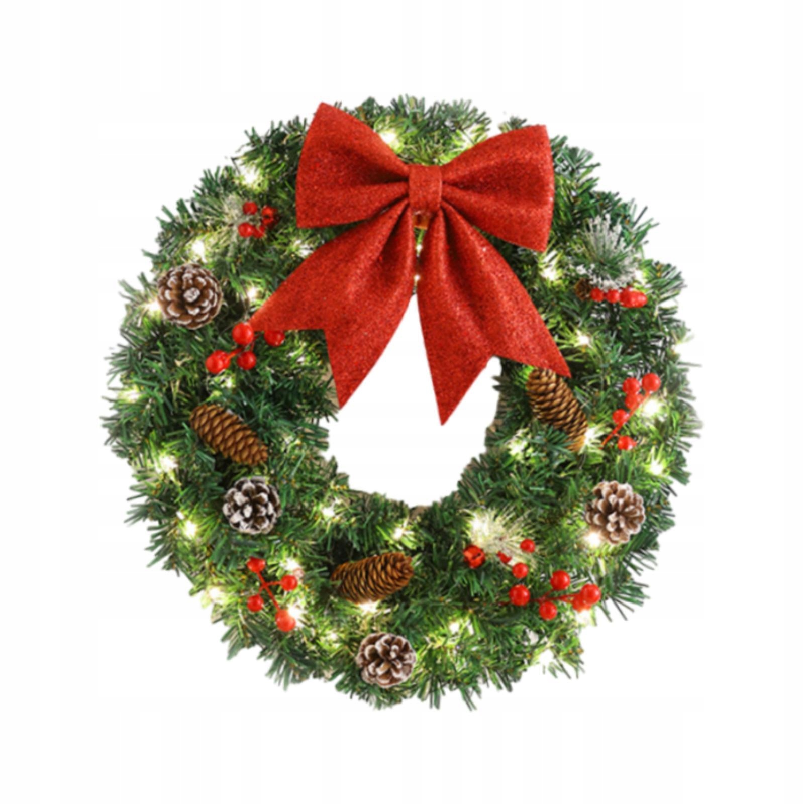 [Дизайн]: Рождественский венок имеет уникальный дизайн и яркие цвета, с украшением в форме банта, которое добавит праздничную атмосферу в ваш дом.
