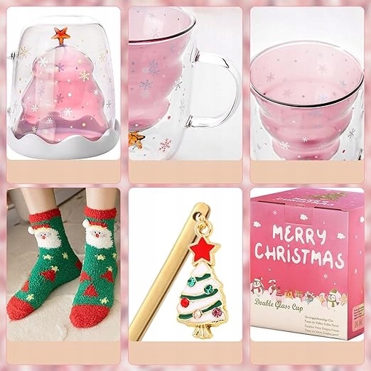 РОЖДЕСТВЕНСКАЯ КРУЖКА СТЕКЛЯННАЯ СТЕКЛО С ДВОЙНЫМИ СТЕНАМИ + ЛОЖКА В ПОДАРОК