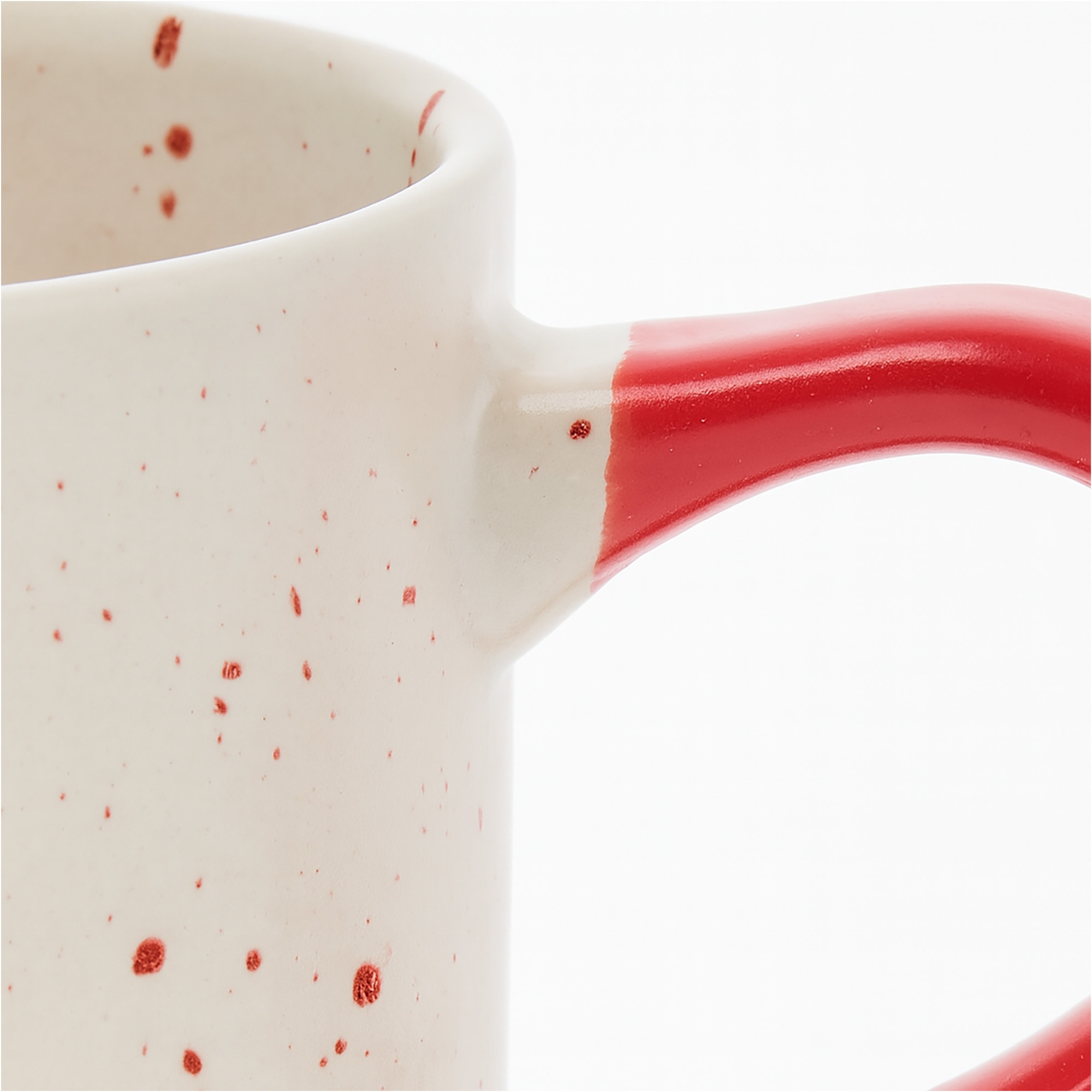 Надпись «XMAS» в минималистическом стиле — современный отсылка к рождественским традициям. Белая кружка с нежным декором привносит в интерьер тепло и радостную атмосферу, идеально сочетаясь с другими рождественскими элементами - веточками, огоньками или красно-золотым фарфором.