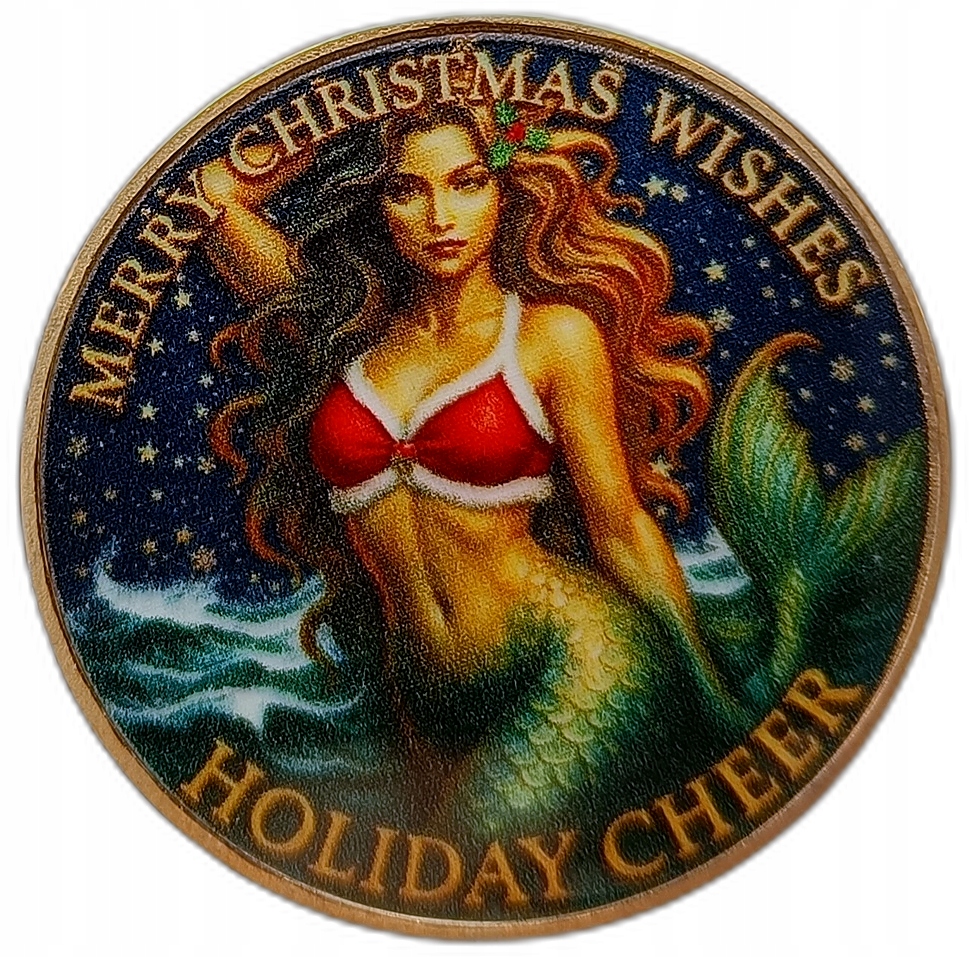 РОЖДЕСТВЕНСКАЯ МОНЕТА – ЖЕНЩИНА-РУСАЛКА – САНТА 40 ММ UNC