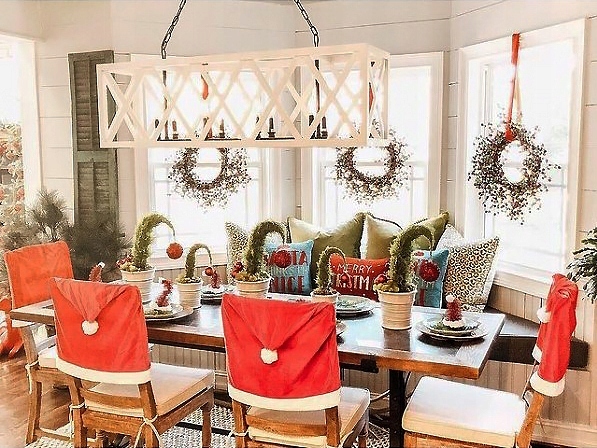 Вы можете создать уникальную, праздничную атмосферу на своей кухне, столовой или гостиной. Где бы ни происходили традиционные стулья со спинкой. Ваш дом получит еще большую магию Рождества, и ваши гости будут в восторге от украшения. Обложка в виде шляпы Санты универсальна и подходит для большинства стульев.