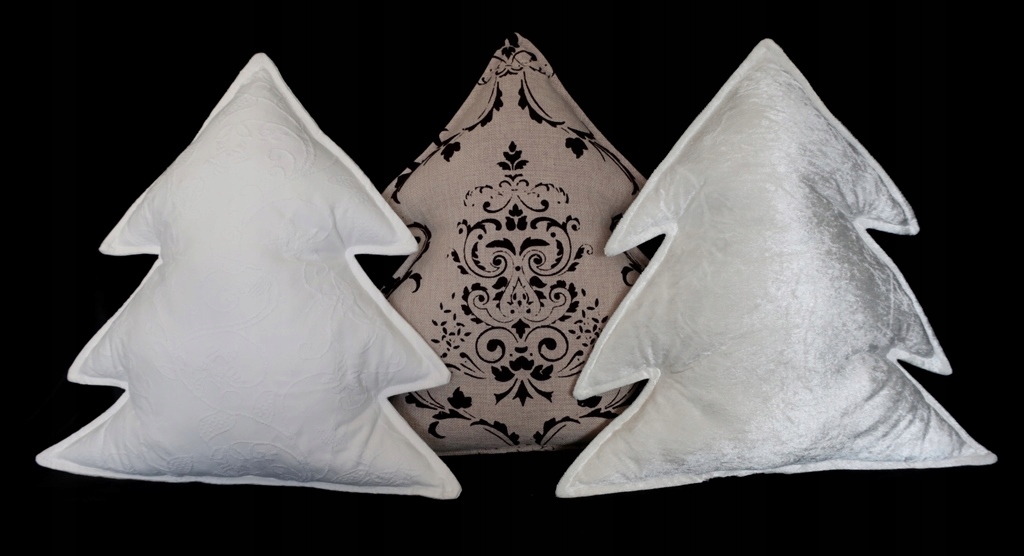 a large Christmas cushion in the shape of a Christmas tree - black and silver,