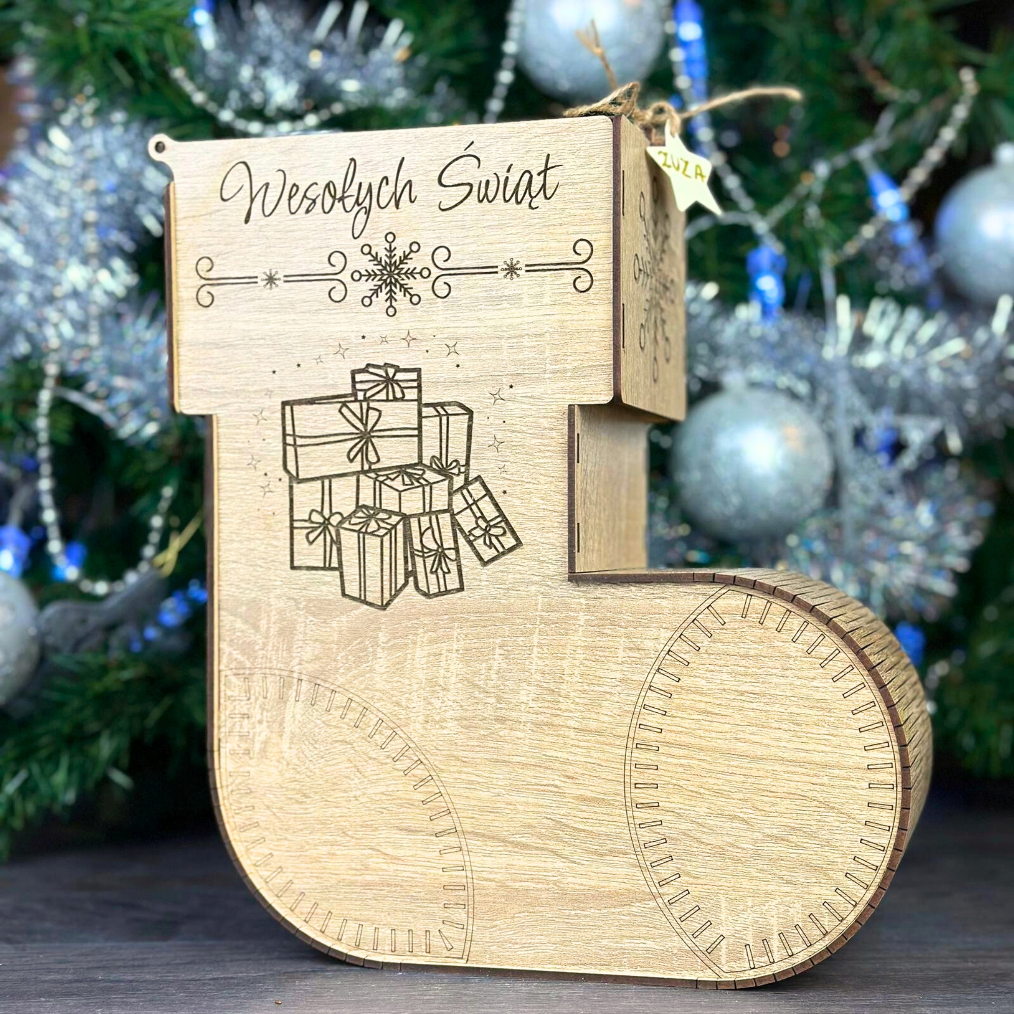 РОЖДЕСТВЕНСКИЙ НОСОК В ПОДАРОК на РОЖДЕСТВО ДЕРЕВЯННЫЙ чулок для сладостей