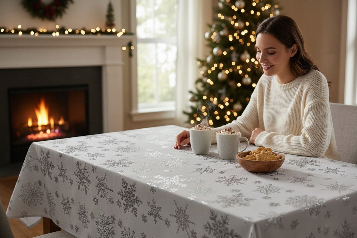 ❄️ Создайте праздничную атмосферу в своем доме с помощью элегантной, устойчивой к загрязнениям скатерти!