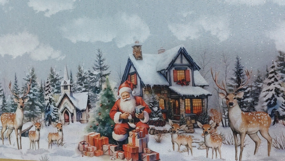 РОЖДЕСТВЕНСКАЯ СКАТЕРТЬ 130х180 СМ РОЖДЕСТВЕНСКАЯ ПЯТНЕУСТОЙЧИВАЯ САНТА ОЛЕНЬ