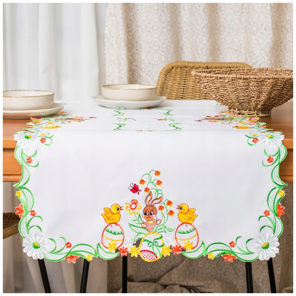 Рождественская скатерть Пасхальная вышита на таблице 130x180 Белые пасхальные яйца кролик h1>