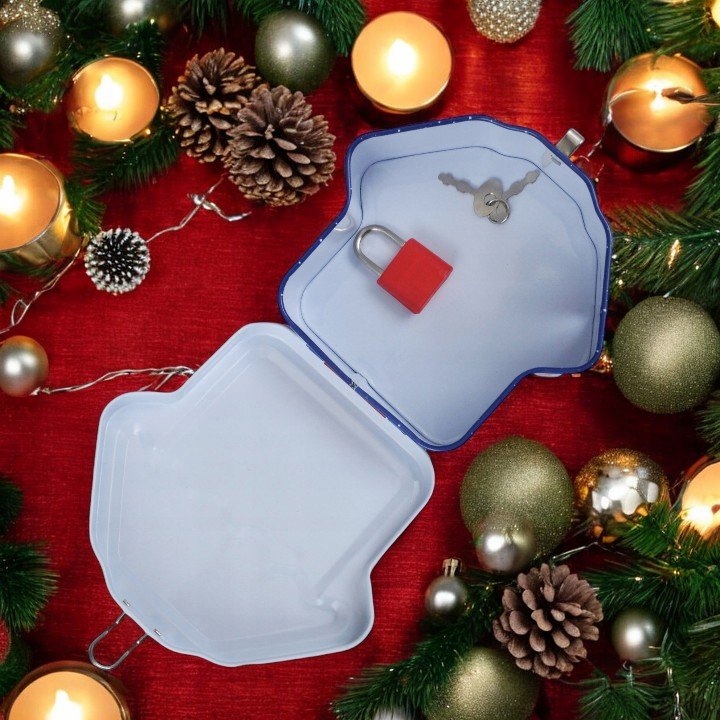 Это празднично. дизайн привнесет в ваш дом волшебство Рождества, а практичный навесной замок обеспечит сохранность хранящихся там вещей 🔒. Идеально подходит в качестве подарка или украшения новогоднего стола! 🎅🎄