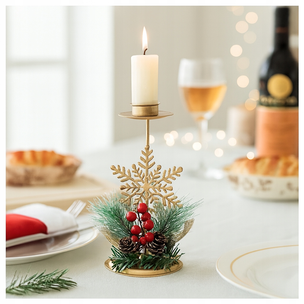 РОЖДЕСТВЕНСКИЙ ЗОЛОТОЙ ПОДСВЕЧНИК ДЛЯ РОЖДЕСТВЕНСКОГО СТОЛА КРЕМОВЫЙ