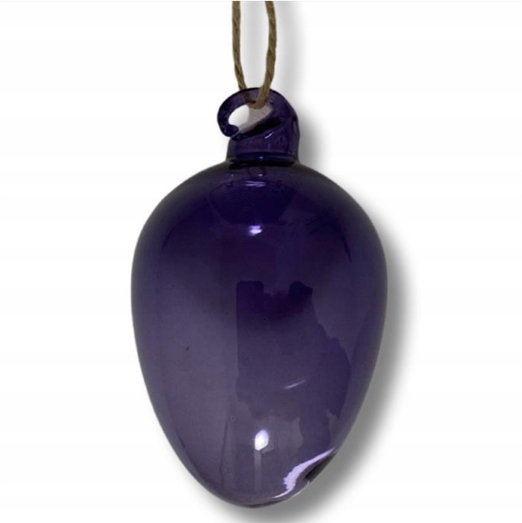 Елочное украшение яйцо из фиолетового стекла. Простая форма и характер украшения станут теплым дополнением любого интерьера к предстоящим Пасхальным праздникам. Универсальный характер декора дает неограниченное количество решений и применений.