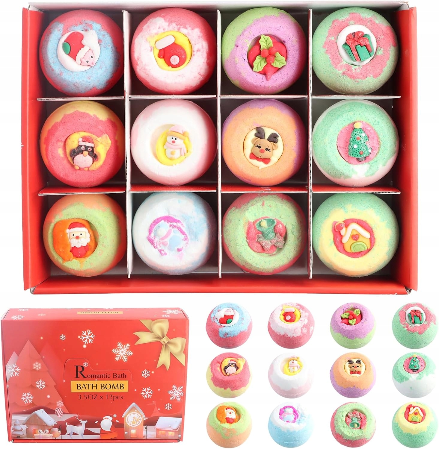 Погрузитесь в рождественскую атмосферу с набором из 12 бомбочек для ванны с разными ароматами и уникальным рождественским дизайном. Идеальный подарок, сочетающий в себе отдых и уход за кожей, дополненный красивой тематической упаковкой.