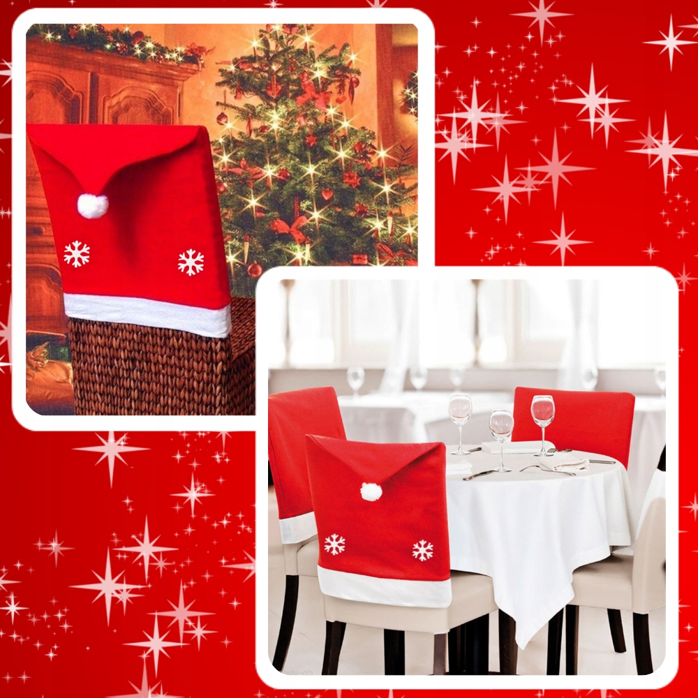 НАБОР РОЖДЕСТВЕНСКИХ ЧЕХЛОВ НА СТУЛЫ ШАПКА САНТА 6 шт. + ЗВЕЗДЫ