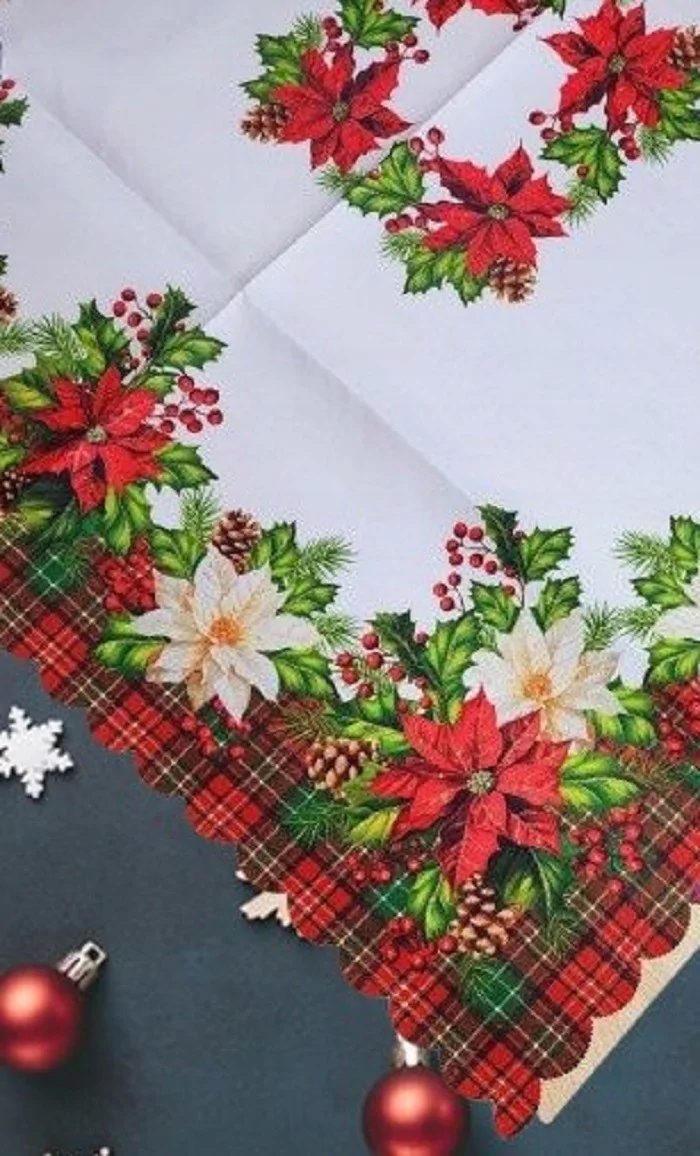 Рождественские скатерти белые, Вифлеемская звезда и сетка 40х90см