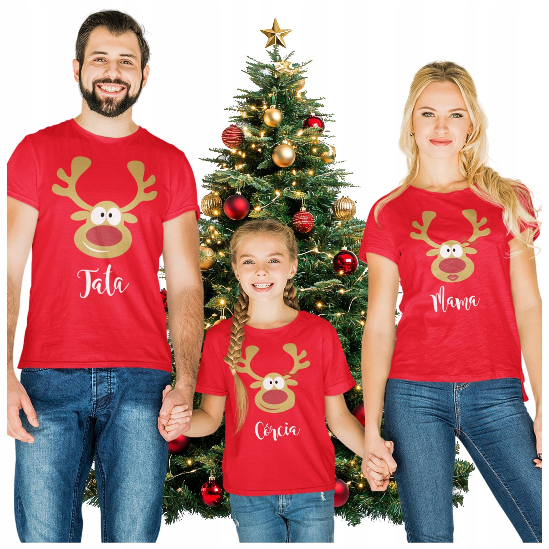 НАБОР РОЖДЕСТВЕНСКИХ ФУТБОЛОК ДЛЯ ВСЕЙ СЕМЬИ 2+1 КРАСНЫЕ ФУТБОЛКИ СЕССИИ