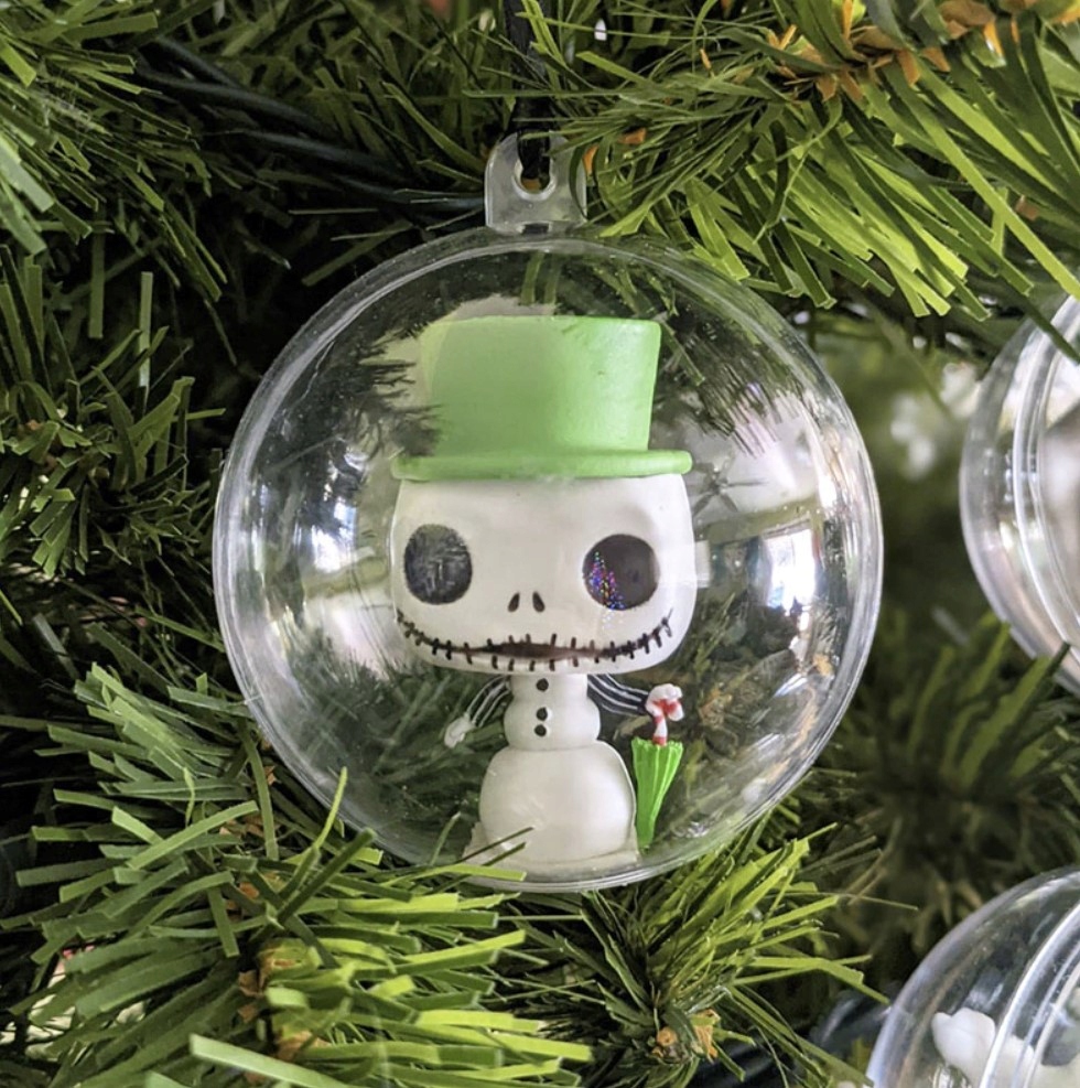 - СКЛОНИТЕ ПОполам — безделушка складывается пополам, поэтому внутрь можно положить красивые украшения, например, перья, блестки, мох, искусственный снег, ленты или конфетти. Также можно сделать сладкую безделушку – всего несколько конфет и готово. Шарики также можно раскрасить изнутри или снаружи.