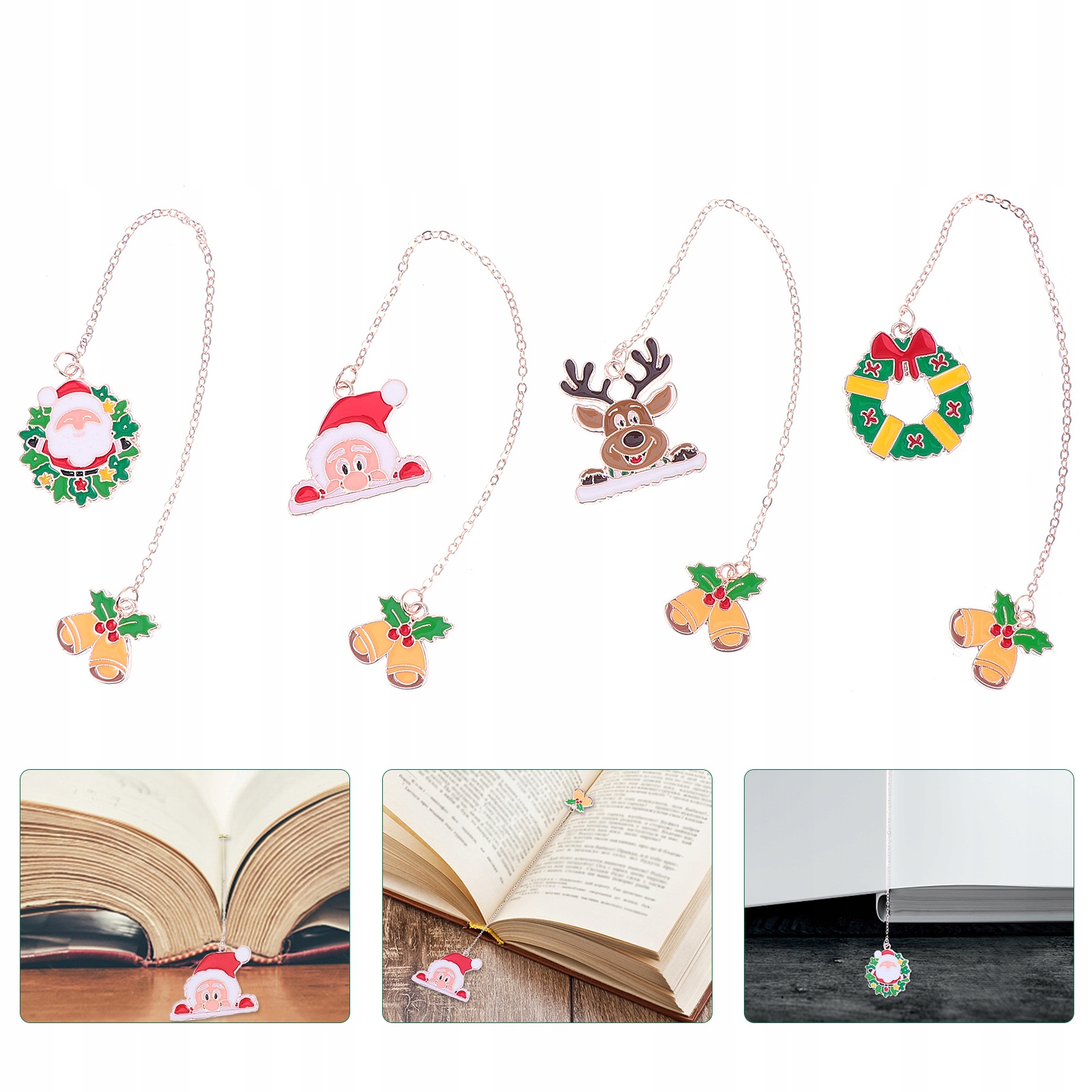 Вы получите 4 закладки на рождественскую тематику в 4 различных рождественских стилях, что предоставит вам больше возможностей для использования. Эти рождественские закладки изготовлены из сплава, безопасны и долговечны в использовании, их нелегко сломать или деформировать, они предназначены для длительного использования.
