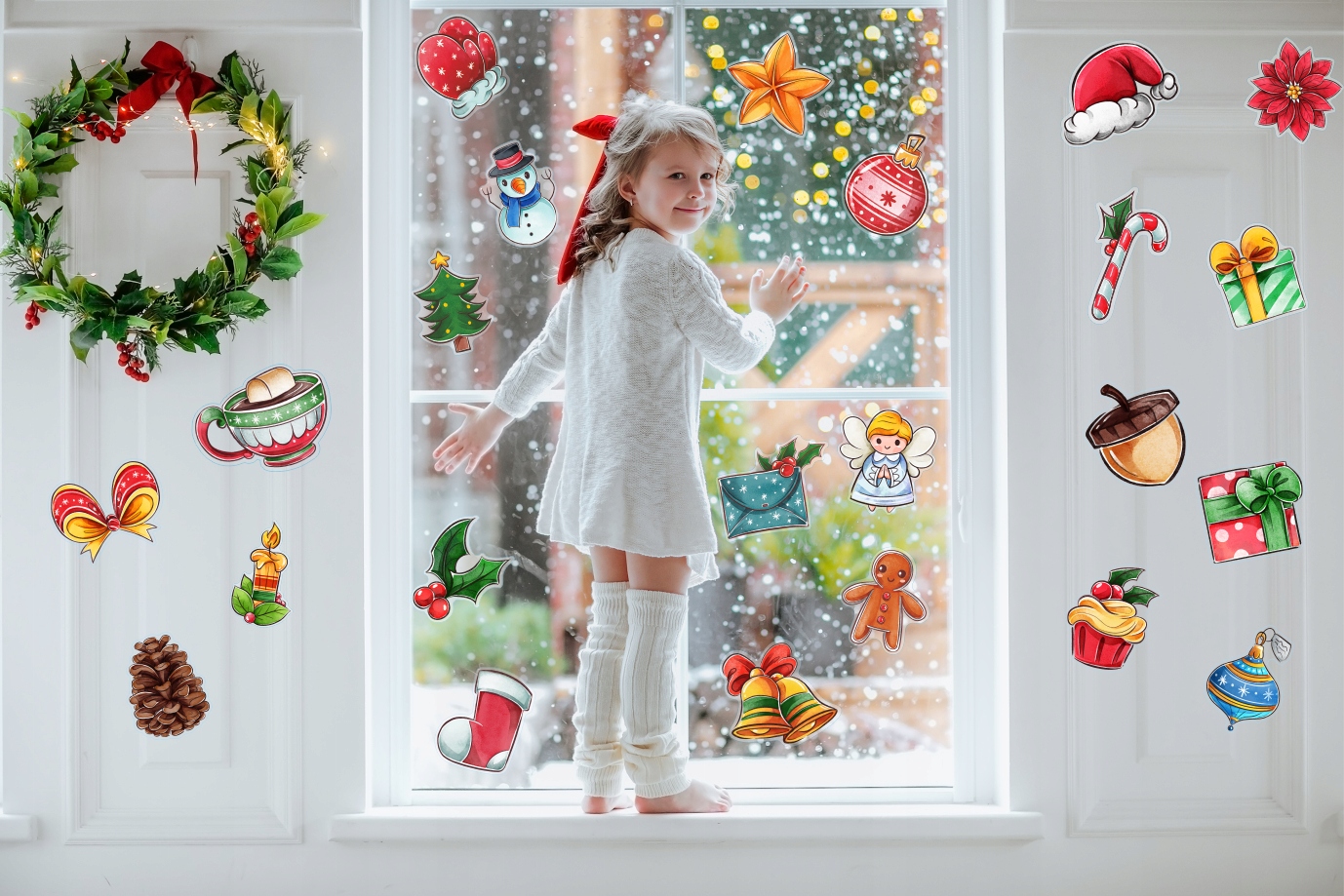 Стеклянная наклейка, окно. Рождественское украшение. Это придаст каждому окну праздничный вид и поставит вас в праздничное настроение задолго до Рождества :) h1>