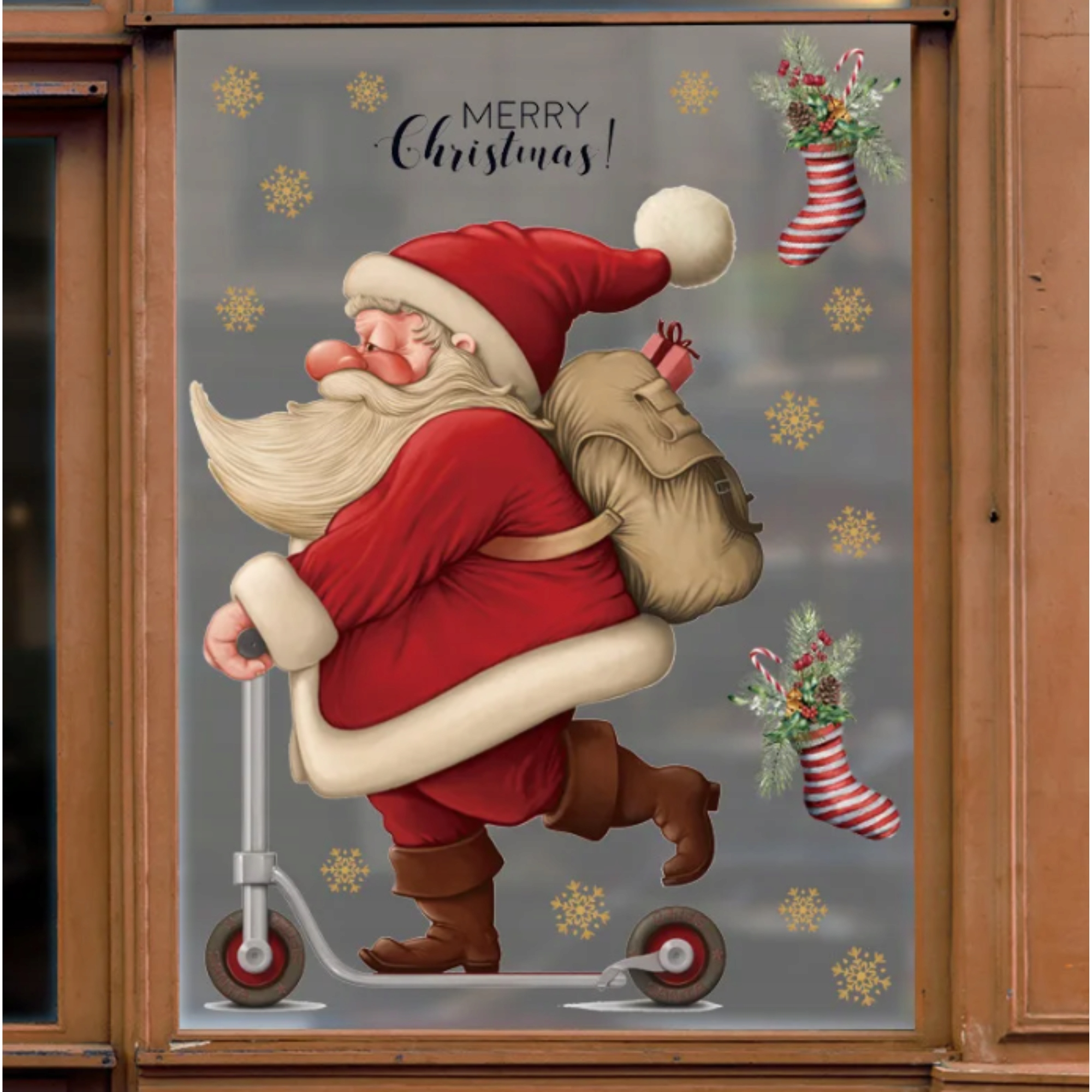 Рождественские наклейки на оконных украшениях с Санта -Клаусом